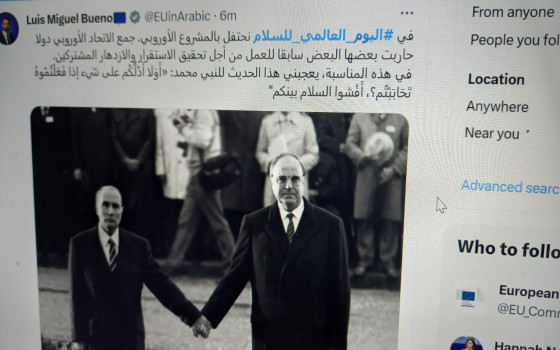 بروكسل : اوروبا والعرب استعان لويس بيونو المتحدث باسم الاتحاد الاوروبي في شمال افريقيا والشرق الاوسط ، بحديث للرسول محمد في ماكتبه على منصة اكس " تويتر...