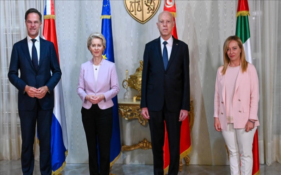 وفي وقت سابق، أعلنت الرئاسة التونسية في بيان مقتضب عبر فيسبوك، عن "لقاء رئيس الجمهورية قيس سعيد مع رئيسة المفوضية الأوروبية أورسولا فون دير لاين، ورئيسة مجلس الوزراء الإيطالية جورجيا ميلوني، والوزير الأول الهولندي مارك روته"، مشاركة عدة صور من لقاءاتهم فقط.