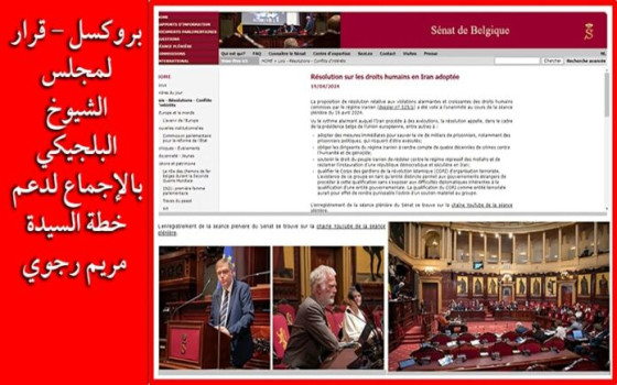 وذلك وفقا لماج اء في بيان صدر عن المعارضة الايرانية تسلمنا نسخة منه وجاء في البيان انه في يوم الجمعة 19 أبريل ، أقر مجلس الشيوخ البلجيكي قرارا بالإجماع لدعم الشعب الإيراني وخطة السيدة مريم رجوي المكونة من 10 نقاط.