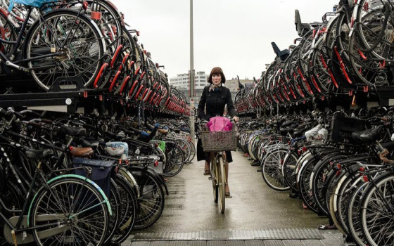 مع وجود جراجات مجانية كبيرة تحت وحول محطات الباصات والقطارات مع محلات تأجير الدراجات للسياح الزائرين لهولندا
