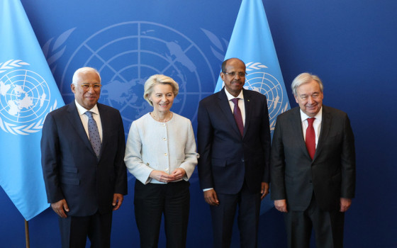 A joint statement was issued and distributed in Brussels following a meeting yesterday, Sunday, at the United Nations Headquarters in New York, between the Chairperson of the African Union Commission, Mahmoud Ali Youssouf; the President of the European Council, António Costa; the President of the European Commission, Ursula von der Leyen; and the Secretary-General of the United Nations, António Guterres, on the sidelines of the 80th session of the United Nations General Assembly. The meeting was attended by senior officials from the secretariats of the three organizations. The statement read: “The three organizations affirmed their support for multilateralism as the most effective way to address today’s challenges. They condemned the increasing disrespect for international humanitarian law and human rights law. They discussed peace efforts in Africa, including the need to end the devastating war in Sudan by intensifying collective support and coordination towards an inclusive political dialogue aimed at an immediate cessation of hostilities and a sustainable solution to the conflict. They also discussed measures to strengthen the fight against terrorist armed groups and promote reconciliation and development in the Sahel region. They affirmed their support for the UN roadmap to revive the political process in Libya and renewed their commitment to addressing the issue of migration in line with international humanitarian and human rights standards, including through the AU-EU-UN Tripartite Taskforce on the Situation of Migrants and Refugees in Libya. They expressed their support for ongoing international and regional peace initiatives in the eastern Democratic Republic of the Congo, in line with the communiqué adopted by the AU Peace and Security Council during its 1261st meeting on 14 February 2025 and UN Security Council Resolution 2773 (2025). They reaffirmed their support to the African Union Mission for Support and Stabilization in Somalia (AMISOM), and urged continued and expanded donor contributions to ensure the Mission's effective implementation of its mandate. Furthermore, they exchanged views on the ongoing reviews of peace operations aimed at more efficiently addressing emerging challenges in Africa and beyond. They welcomed these efforts and called for further progress in operationalizing Security Council Resolution 2719 (2023) on the prospective financing of African Union-led peace support operations, on a case-by-case basis.