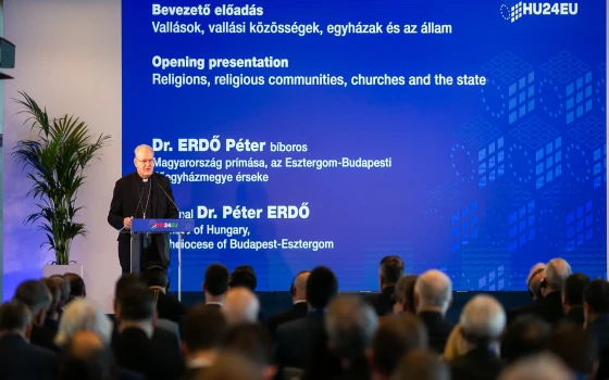 According to the European statement, “The conference opened with a series of welcoming remarks. On behalf of the hosts, Miklós Soltys, State Secretary for Church Relations and National Minorities in the Prime Minister’s Office, welcomed the participants. Representatives of the historical churches in Hungary gave a welcoming speech or introductory presentation to bring closer and deepen the main theme of the conference, namely the important issue of cooperation between the state and religious communities, both in Hungary and in Europe. First, József Steinbach, Pastoral President of the Synod of the Reformed Church in Hungary and Bishop of the Transdanubian Reformed Church Region, shared his thoughts with the audience, which was followed by a welcoming message from Prof. Dr. Andor Grosz, President of the Federation of Hungarian Jewish Communities (MAZSIHISZ). Cardinal Dr. Péter Erdö explained in his presentation that the previous legal regulation and cooperation that focused on the regulatory system of the church is being replaced by the fundamental rights approach to religious practice throughout Europe, which no longer focuses on the church as a regulatory partner, but on the individual as a subject of religious freedom. This also helps secularism gain ground. This was followed by a presentation by Dr. Mathias Enniger, a Swiss religious scholar who has been studying and researching the religious diversity of states and the cooperation of religious communities with states for decades. In his presentation, he highlighted the types of cooperation between church and state, and gave examples of models that are being implemented in different countries. In addition to presenting international examples and the Swiss system in his country, he also referred to the Hungarian model, which he researched and praised, the diversity of the list of existing churches, and the generous system of church support structures. In the session “Age of Risks”, György Holvenyi, MEP (Patriots for Europe Group), member of the European Parliament’s Development Committee, presented the increasing persecution of Christians. Tristan Azbej, State Secretary for the Aid of Persecuted Christians, then presented the Hungarian initiatives and Hungary’s unique aid program to help Christians. Statistics and assessments of the situation were followed by a very moving presentation. Bishop Wilfried C. Anagbe, Bishop of the Diocese of Makurdi in Nigeria, spoke about the persecution and massacres of Christians in the country. He regretted that Europe had not provided enough assistance to control armed terrorists and murderers, however, he thanked the Hungarian government for the concrete support it had received so far. The afternoon programme of the conference included two interesting roundtable discussions. The first was entitled “Christianity as the foundation of European culture and political order”. The participants stated that in many respects (cultural roots, traditions, values, etc.) the culture of Christianity cannot be excluded, as this could lead to loss and the onset of negative trends. (Participants in the roundtable discussion: Rev. Prof. Duarte Nuno Queiroz de Barros da Cunha, former Secretary General of the Council of European Bishops’ Conferences; Alessandro Calcagno, Assistant Secretary General and Legal Adviser of the Commission of Bishops’ Conferences of the European Union; Rev. Frank-Dieter Fischbach, Secretary General of the Conference of European Churches; Dr. Csaba Török, PhD, Parish Governor of the Cathedral of Our Lady of the Assumption and Saint Adalbert of Esztergom, Director of the Cathedral Treasury, University Professor, TV Director of the Hungarian Catholic Bishops’ Conference; Moderator: Gergely Vajvolgyi, journalist, broadcaster and political scientist)